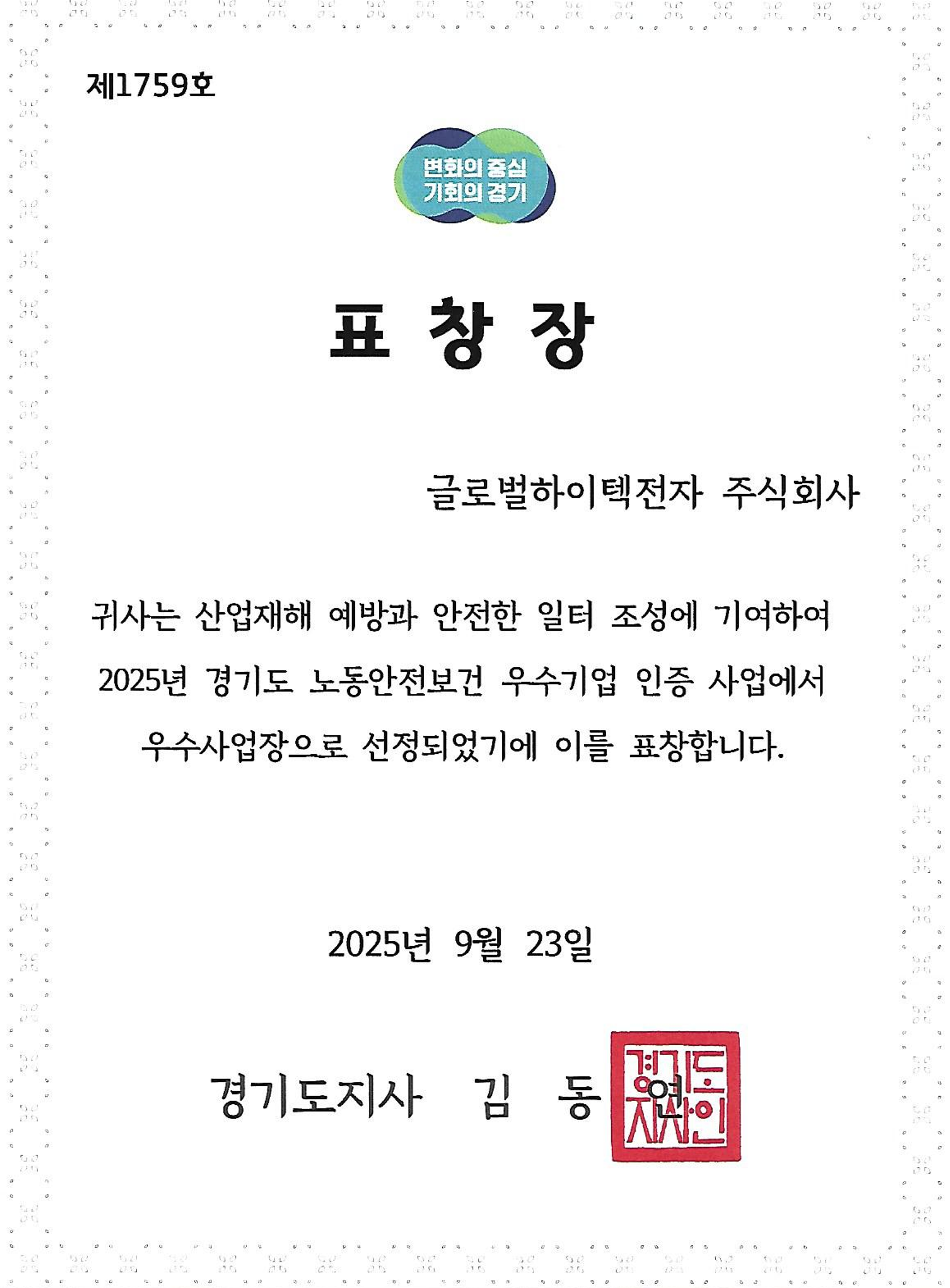 경기도지사 표창, 『2025 노동안전보건 우수기업』